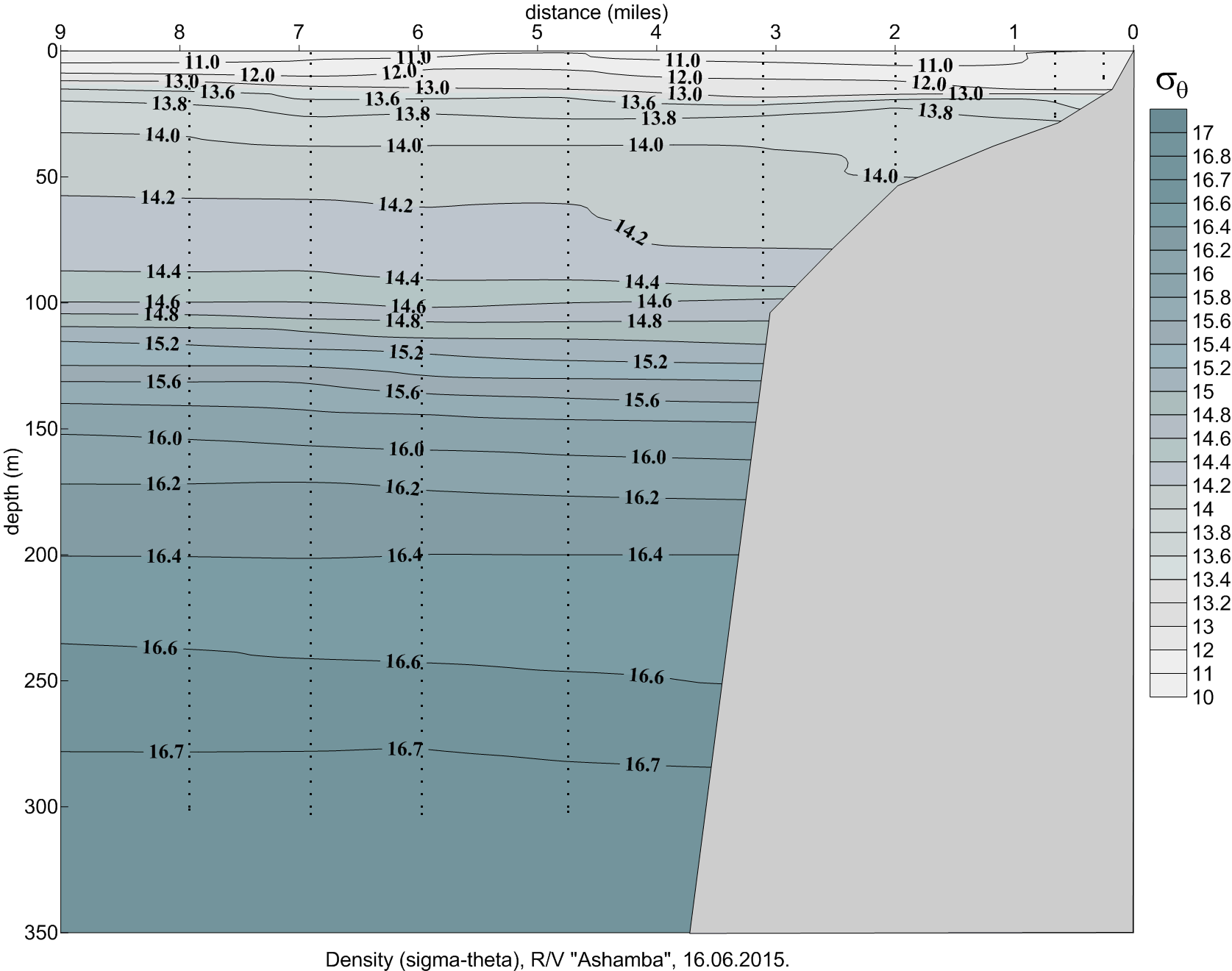 9-ти мильный гидрологический разрез 16.06.15. НИС "Ашамба".